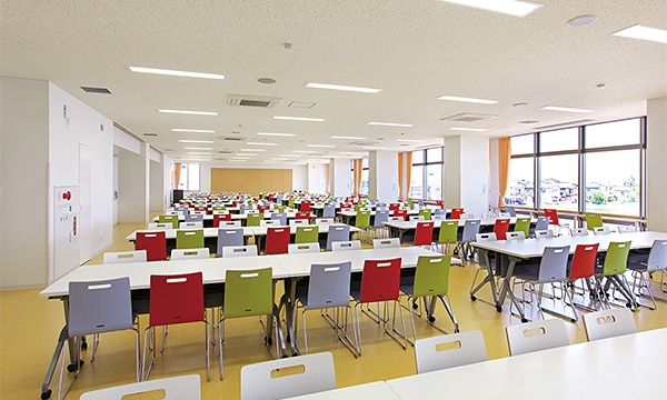 - 全学生が集まれる部屋です。食事・学習など、学生が自由に使えます。講演会などにも使います。