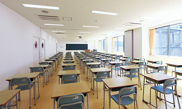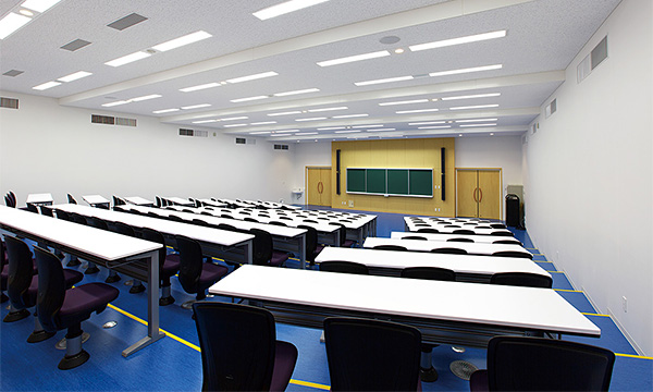 - 120人が学べる階段教室です。音響・映像ともに質の高い設備になっています。